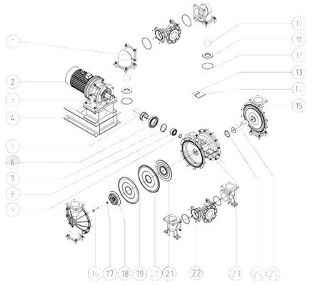 Máy bơm màng phổ biến là loại máy bơm màng kép, có thể hoạt động bằng điện hoặc khí nén.Đây là một máy bơm dịch chuyển tích cực sử dụng hai màng ngăn linh hoạt chuyển động qua lại tạo ra một khoang tạm thời, cả hai đều hút vào và đẩy chất lỏng qua máy bơm.Nó cung cấp một con dấu kín giữa cơ chế truyền động và buồng nén, cho phép máy bơmđể chuyển, nén và hút môi chất mà không cần chất bôi trơn.Màng chắn đàn hồi (PTFE, hoặc cao su), có thể được sử dụngnhư một con dấu động đa năng loại bỏ nhiều hạn chế được tìm thấy với các phương pháp làm kín khác.Máy bơm Có thể được sử dụng để chuyển rác, nước, bùn, nhiên liệu, bùn, nước thải, nước thải, hóa chất, axit.